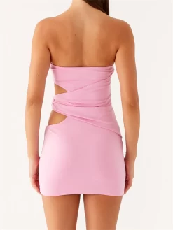 Strapless Dress for Women Slim Fit Stylish Solid Hollow Out Tube Bodycon Mini Dress for Summer