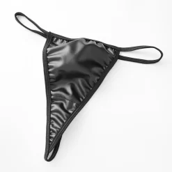 Women’s Lingerie Set Cutout Metal Ring Chain Halter Neck Mini Babydoll Leather Dress with Thong 2 Pcs Set