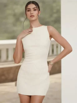 Women’s Solid Color Mini Dress Sleeveless Open Back Slim Fit Tank Dress Cocktail Party Dresses
