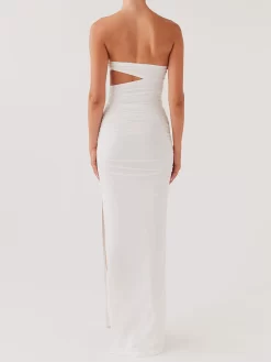 Women’s Elegant Tube Dress Strapless Twist Front Cut Out Bodycon Long Dress Solid Color Summer Party Dresses